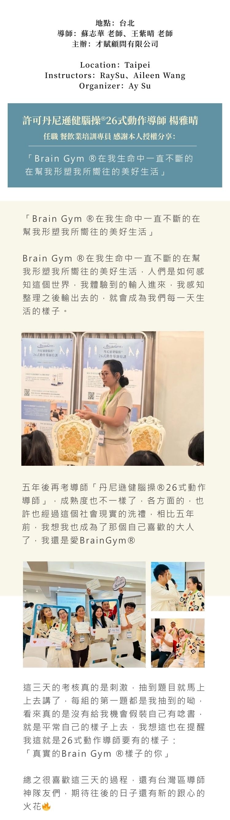 #丹尼遜健腦操 #動作導師 #激活中場操作促進全腦學習 #全腦整合學習 #BrainGym #才賦顧問有限公司 #AySu調和最佳狀態 #蘇志華 #王紫晴 #RaySu #AileenWang