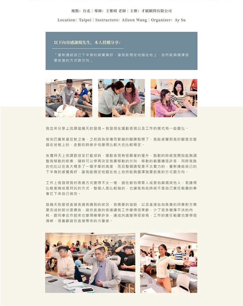 #布隆貝格韻律運動訓練 #原始反射 #情緒調節 #內在領導力 #才賦顧問有限公司 #AySu調和最佳狀態 #王紫晴 #BRMT #Blomberg #AileenWang