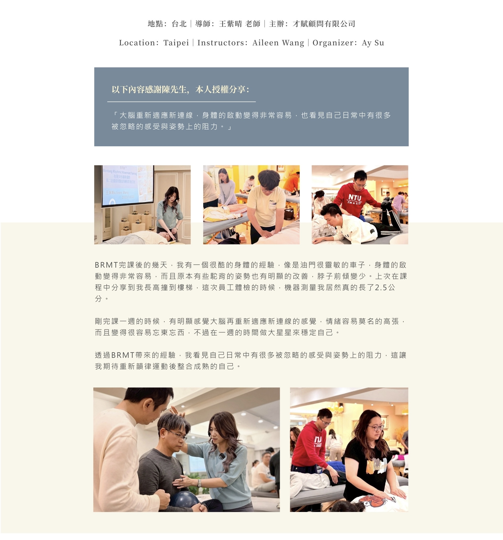 #布隆貝格韻律運動訓練 #原始反射 #情緒調節 #內在領導力 #才賦顧問有限公司 #AySu調和最佳狀態 #王紫晴 #BRMT #Blomberg #AileenWang