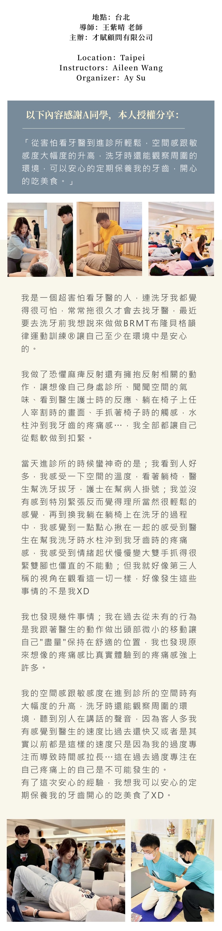 #布隆貝格韻律運動訓練 #原始反射 #情緒調節 #內在領導力 #才賦顧問有限公司 #AySu調和最佳狀態 #王紫晴 #BRMT #Blomberg #AileenWang